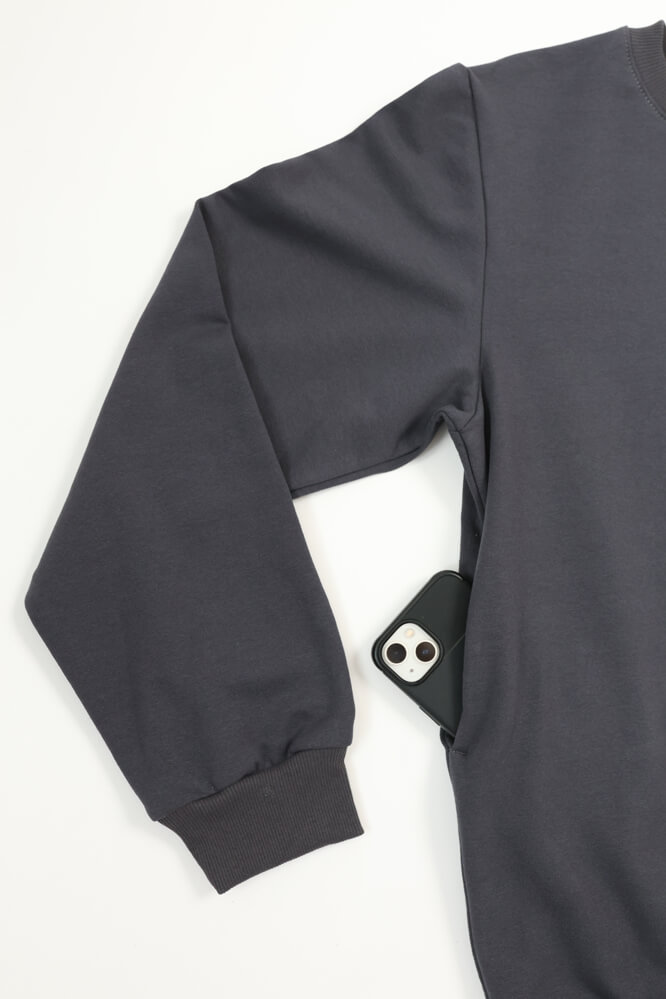Bluza męska BEAT grafitowa na meszku z ukrytą kieszenią na telefon