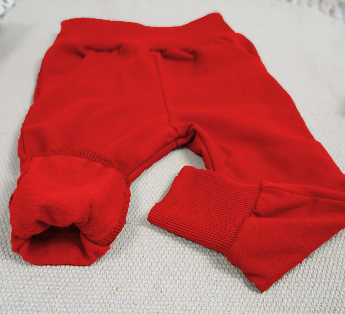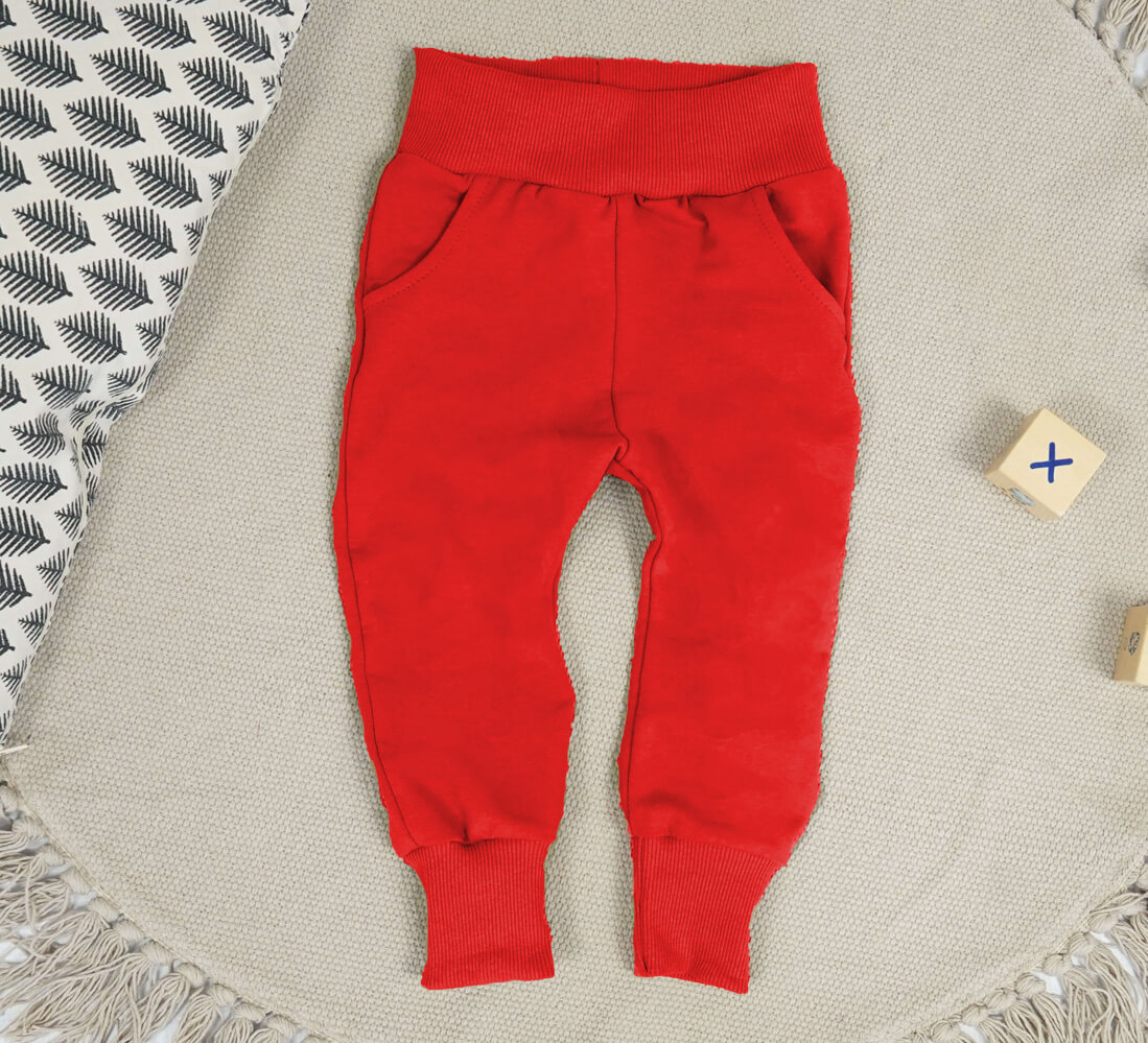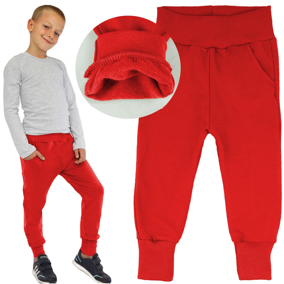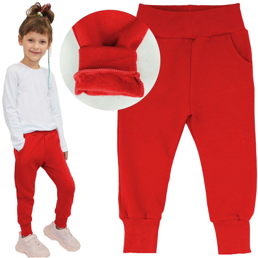Czerwone spodnie dziecięce ocieplane na meszku dla dziewczyn oraz chłopców.