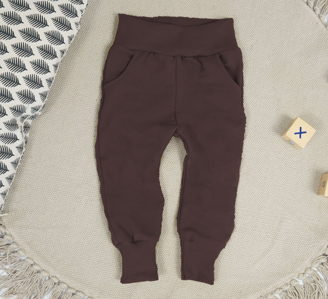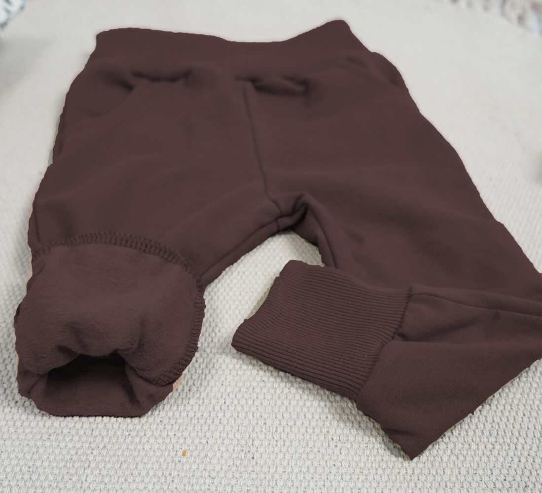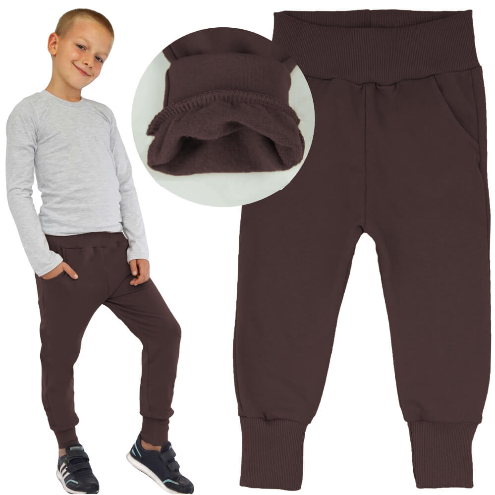 Ciemno brązowe spodnie dziecięce ocieplane na meszku dla dziewczyn oraz chłopców.