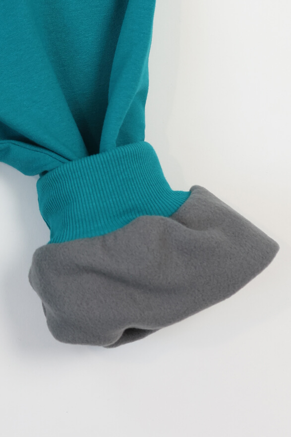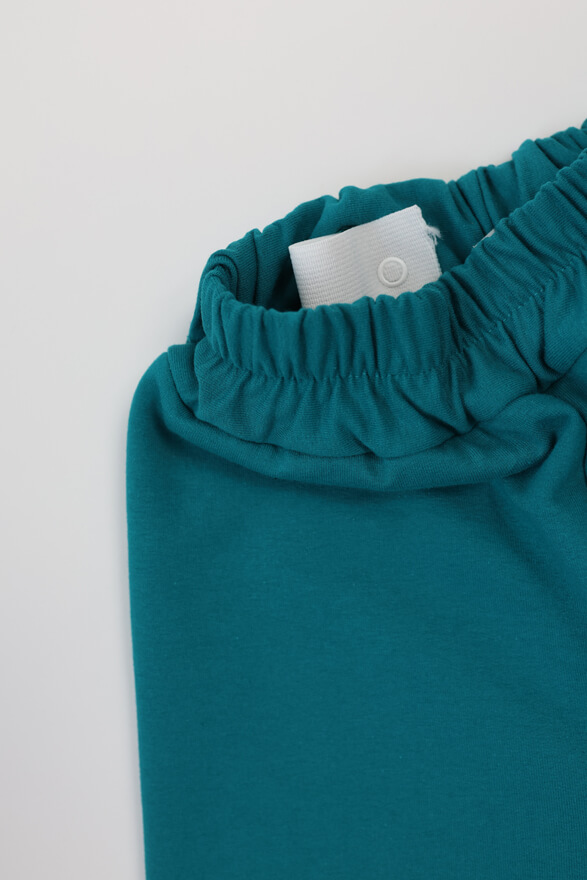 Szerokie spodnie ocieplane polarem ze ściągaczami, regulowane w pasie w kolorze petrol - turkusowym.