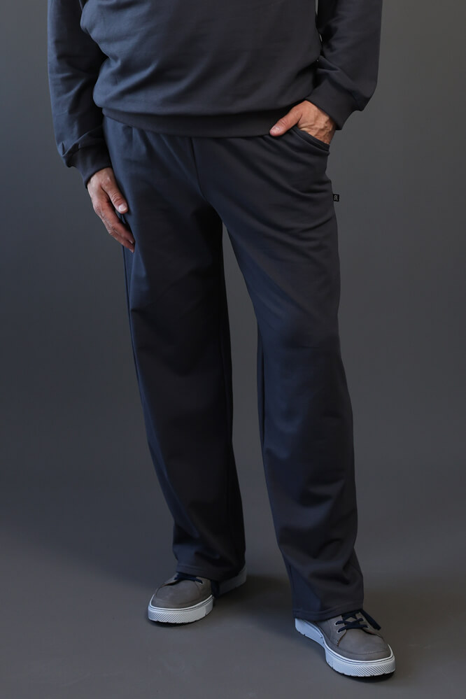 Spodnie ocieplane męskie BEAT grafitowe na meszku, proste nogawki, wysoki stan, regulowane w pasie