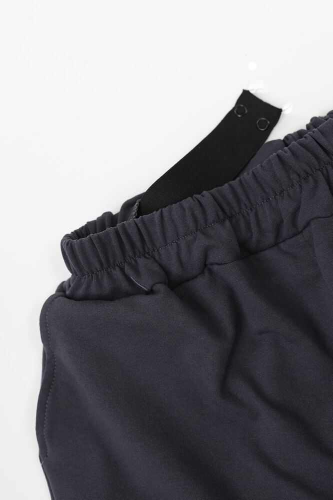 Spodnie w pasie posiadają regulowaną na cztery podwójne napy gumę. Przy wewnętrznym szwie znajduje się otwór, przez który w łatwy sposób można precyzyjnie dopasować obwód pasa bez konieczności wiązania. Zakres regulacji wynosi 15cm ( 5cm odległość między napami). Istnieje możliwość zmniejszenia lub zwiększenia pasa. Funkcja ta została stworzona z myślą o mężczyznach o różnych sylwetkach.